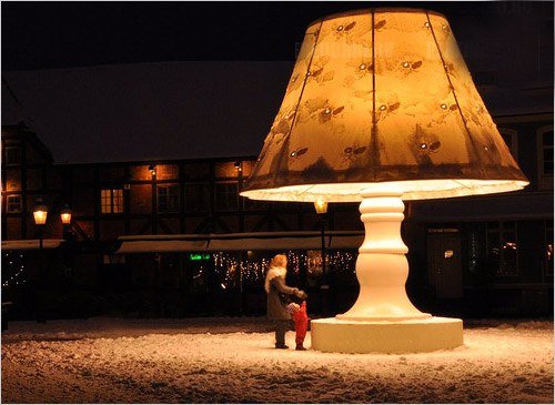 Самая большая в мире настольная лампа установлена в 2006 году на улице Шведского города Мальмё. Что самое интересное — эта лампа не только светится в темноте, но и разговаривает на шведском языке! Лампа сделана в виде скамейки. В течении всего года, эта настольная лампа гастролирует по разным кварталам города Мальмё, но именно на рождество она возвращается на площадь Лилла Торг.