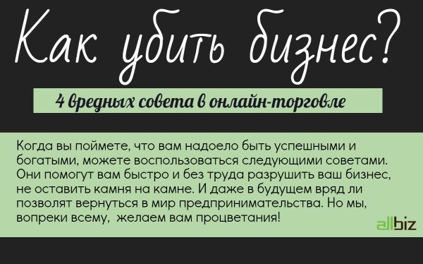 «Тот, кто не умеет улыбаться, не должен заниматься торговлей», — считают китайские мудрецы. Allbiz предлагает вам с чувством юмора отнестись к нашим вредным советам и сделать наоборот. С Днем смеха!