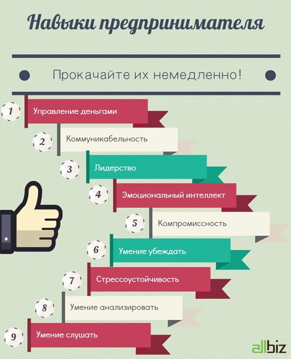 Уважающий себя предприниматель должен знать, какие именно навыки ему нужно развивать в себе. Allbiz решил напомнить их перечень: