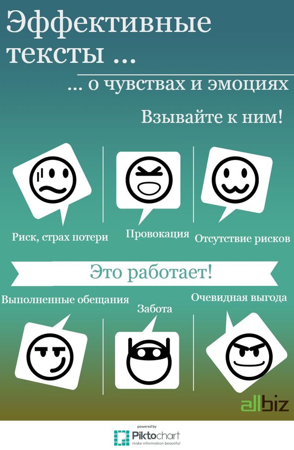 Контакт с целевой аудиторией компании, при котором затрагиваются эмоции и правильно используется психология, дает больше шансов расположить к себе, сделать заказчика более восприимчивым к информации. К чему именно стоит взывать, к примеру, в email-маркетинге? Расскажет инфографика от Allbiz.