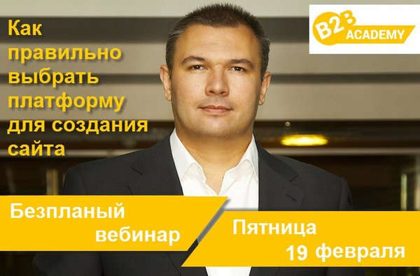 B2B Academy — бесплатние вебинары для бизнеса (16.02.2016): В эту пятницу, 19 февраля, вебинару: «Как правильно выбрать платформу для создания сайта» быть! Директор «1С-Битрикс» в Украине и Беларуси Дмитрий Суслов расскажет о том, как должен выглядеть корпоративный сайт компании в 2016 году. Участие бесплатное по предварительной регистрации: