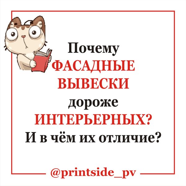 ПОЧЕМУ ОДНИМ ДЕШЕВЛЕ, А НАМ ДОРОЖЕ???… Привет от PrintSide_pv! Такой вопрос часто может возникнуть, когда заказчик узнаёт цену вывески у других наших клиентов, а ему самому выставляют бОльшую сумму! Почему так происходит? — сейчас разберёмся! … В расчёт стоимости изготовления вывески входят много всего — это и расчёт необходимых материалов, и сложность монтажной конструкции и крепежей, и то, где будет нахрдиться вывеска: в помещении или на улице! В помещении применяются более облегчённые конструкции. Ведь здесь нет ветровой нагрузки ,… — Читать дальше