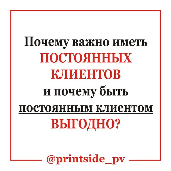 ТАК ПОЧЕМУ ВАЖНЫ ПОСТОЯНЫЕ КЛИЕНТЫ? И ПОЧЕМУ БЫТЬ ТАКИМ КЛИЕНТОМ ВЫГОДНО? ПРИВЕТ! На связи команда PrintSide_pv! В большинстве случаев мы приходим в магазин, покупаем что-либо, нам дают чек и мы уходим… Когда такой магазин один в округе, то мы вынуждены снова и снова приходить туда и отовариваться. А если мгазин в интернете?!… Тогда покупатель может уйти и больше НИКОГДА не вернуться! А ведь продавцу ещё приходится «покупать» внимание покупателя… Сейчас в мире DIGITAL и Интернета всё больше продавцов вынуждены удерживать клиента как можно… — Читать дальше