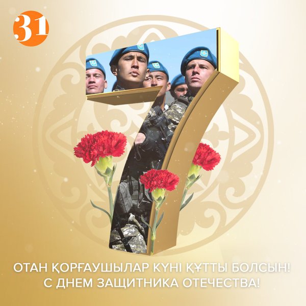 7 мамыр — Отан қорғаушылар күні мерекесімен шын жүректен құттықтаймыз! Еліміздің өркендеуі жолында атқарып жатқан игі қызметтеріңізге табыс, отбасыларыңызға амандық, дендеріңізге саулық тілейміз! _______________________ Дорогие мужчины! Поздравляем Вас с праздником 7 мая — днем Защитника Отечества! Желаем Вам стойкости, мужества, успехов, любви и мира!