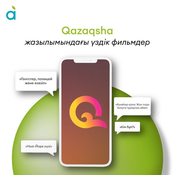 Qazaqsha — тек қазақ тіліндегі фильмдер, хикаялар мен бағдарламалар көрсетілетін алғашқы онлайн-кинотеатр. Карусельдегі жазылымда үздік фильмдер жинақтамасын қабыл ал! __________________ Qazaqsha — первый онлайн-кинотеатр с фильмами, сериалами и программами исключительно на казахском языке. Лови подборку лучших фильмов в подписке в карусели! Айтиева, 23 +7‒702‒300‒05‒01