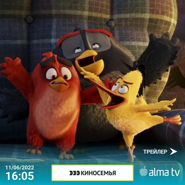 Angry Birds в кино Angry Birds 2 в кино 11/06 сенбі күні сағат 16:05-де «КИНОСЕМЬЯ». 11/06 в субботу в 16:05 на телеканале «КИНОСЕМЬЯ».