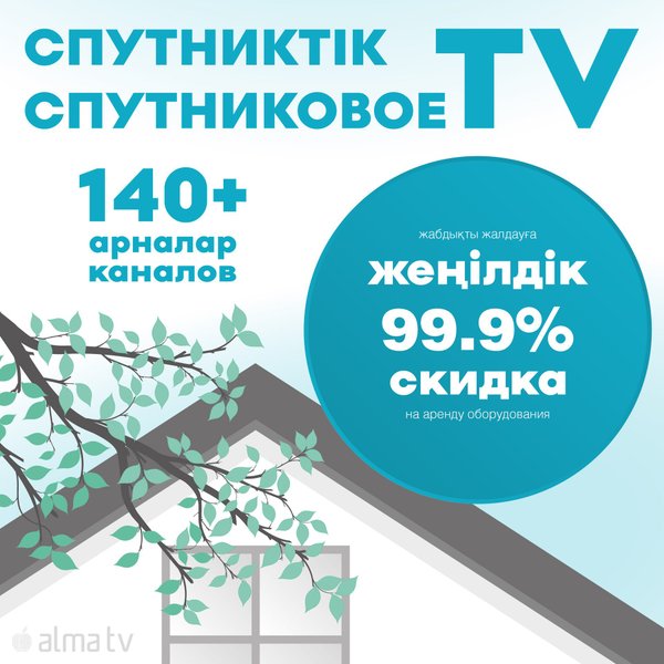 ЖАБДЫҚҚА ЖЕҢІЛДІК! «Спутник 140» топтамасын іске қосыңыз, 3 ай және одан астам уақытқа алдын ала төлем жасаған жағдайда, келісімшарттың тұтастай мерзіміне жабдықты жалдауға 99,9% жеңілдікке ие болыңыз. Іске қосу үшін телефоны арқылы хабарласыңыз немесе сайтында онлайн өтінім беріңіз СКИДКА НА ОБОРУДОВАНИЕ! Подключите пакет «Спутник 140», при внесении предоплаты на 3 и более месяцев получите скидку 99,9% на аренду оборудования на весь срок контракта! Для подключения обращайтесь по телефону или подайте заявку онлайн на сайте