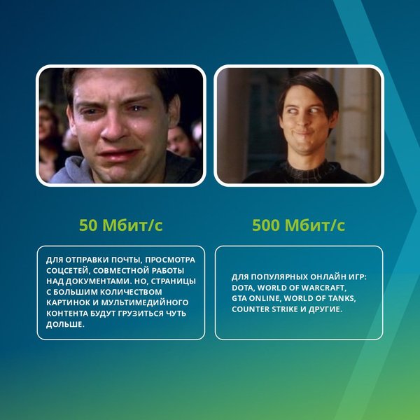 50 Мбит/c для бабушек, а 500 для стримеров? Давайте разбираться в чем разница в этих скоростях интернета! Кстати, подключив тариф от Алма ТВ ты можешь разгоняться до 500 мб/c в просторах интернета! Әжелерге 50 Мбит/c, ал стримерлерге 500 ба? Интернеттің осы жылдамдықтарында қандай айырмашылық барын ажыратып алайық! Айтпақшы, Алма ТВ-ден тарифті іске қосу арқылы сен интернет кеңістігінде 500 мб/с дейін еркін қозғала аласың! Айтиева, 23 +7‒702‒300‒05‒01
