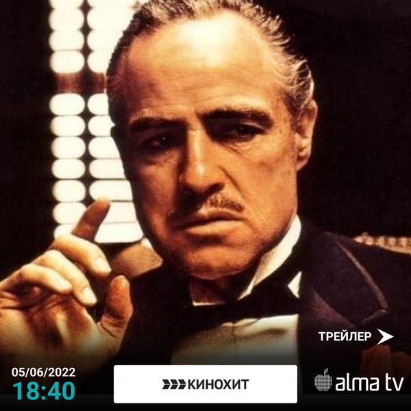 Крестный отец 1—3 05/06 жексенбі күні сағат 18:40-де «КИНОХИТ» 05/06 в воскресенье в 18:40 на телеканале «КИНОХИТ»..