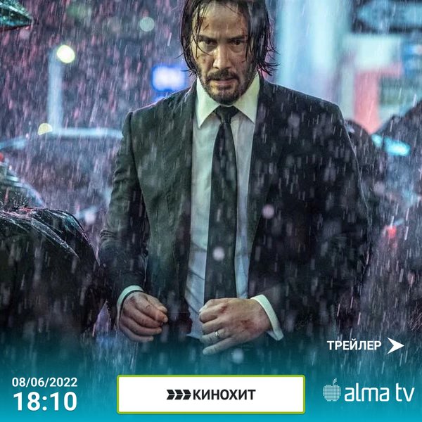 Джон Уик 3 08/06 в среду в 18:10 на телеканале «КИНОХИТ». 08/06 сәрсенбі күні сағат 18:10-де «КИНОХИТ».