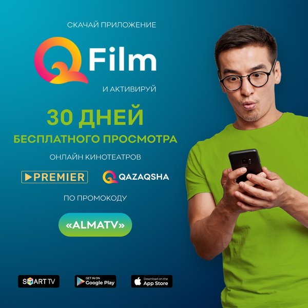 le Play, SmartTV LG, Samsung. 30 күн тегін тамашалау! Арнайы Сіз үшін Premier және Qazaqsha онлайн-кинотеатрларын «ALMATV» промокоды бойынша 30 күн тегін тамашалау мүмкіндігі! Premier - жеке өндірістің эксклюзивті хикаялары мен фильмдері, түрлі жанрдағы кинопрокаттың мыңдаған шетелдік және отандық хиттері және тұтастай отбасына арналған мультфильмдер. Qazaqsha — тек қазақ тіліндегі фильмдер, хикаялар мен бағдарламалар көрсетілетін алғашқы онлайн-кинотеатр. Qfilm* қосымшасын жүктеп ал және эксклюзивті әрі премиалды контентке толығымен тегін қол жеткіз. *Қосымша AppStore, Google Play, SmartTV LG, Samsung-те қолжетімді