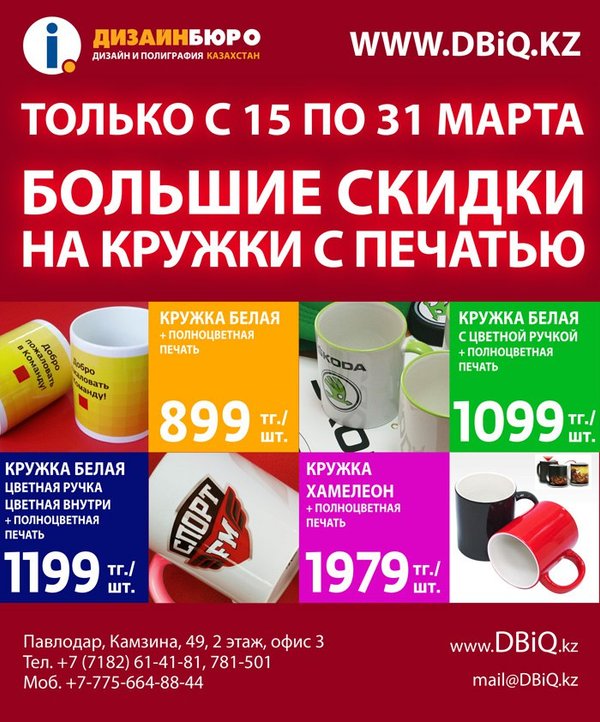 БОЛЬШИЕ скидки до 70% на полноцветную печать на кружках Специально низкие цены с 15 по 31 марта 2016 г.