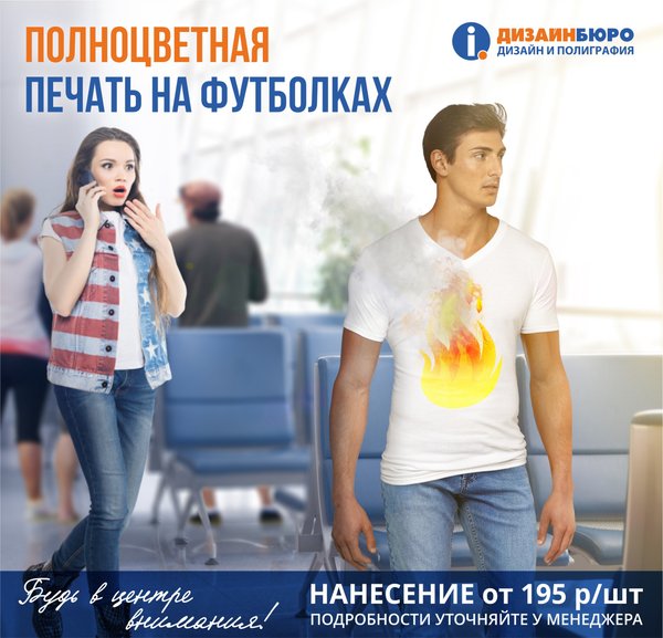 Будь в центре внимания! Полноцветная печать на футболках в #дизайнбюроIQ тираж от 1 штуки мужские, женские, детские футболки разных размеров нанесение любого изображения быстрые сроки изготовления Подробности уточняйте у менеджеров компании Ждём Вас в гости Омск, Масленникова, 28, офис 409.................... тел.: Омск, 70 лет Октября, 25/1, бутик 193, 3 эт..........тел. весь прайс на сувениры тут :