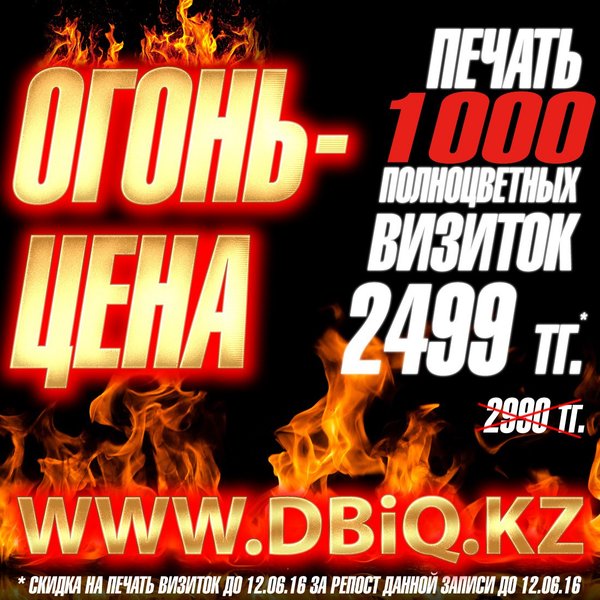 Вот это ДА! 1000 визиток всего за 2499 тенге! Подробности у меня на стене!