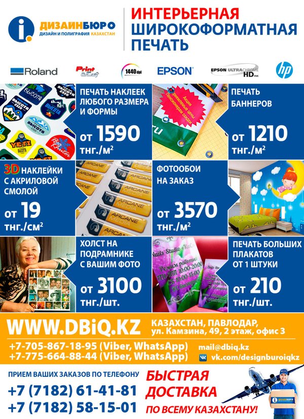 Широкоформатная печать в Дизайн-Бюро iQ Все цены на печать - г. Павлодар, ул. Камзина 49, офис 3 тел.: Мобильные телефоны: Viber, WhatsApp) Viber, WhatsApp)