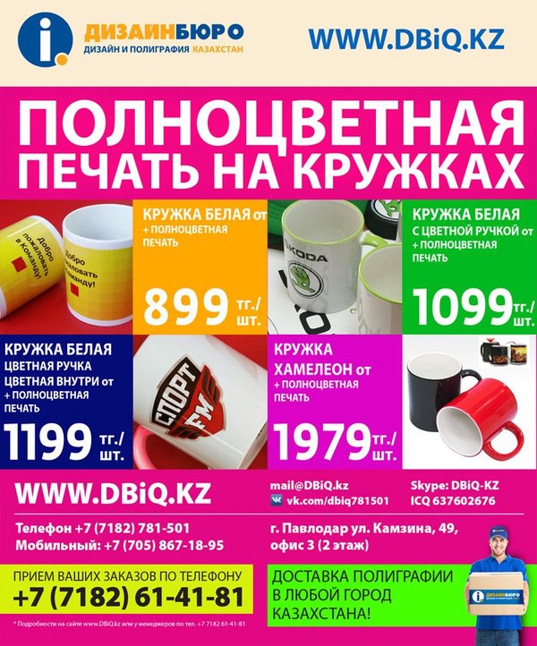 ную информацию можно получить по телефону : +7 775 664 88 44 8 7182 61-41-81 Готовые макеты отправлять на e-mail.: 61-41-81@mail.ru Для комплексных заказов предусмотрены дополнительные скидки!