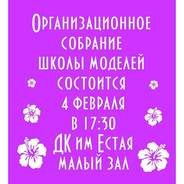 Приглашаем на обучение в школу моделей девушек 18+ Обучение платное По вопросам оплаты в direct Расписание группы: Суббота и воскресенье в 15:00 Набор без параметров. Запись по WhatsApp Укажите фамилию и имя учащегося рост возраст номер контактного телефона