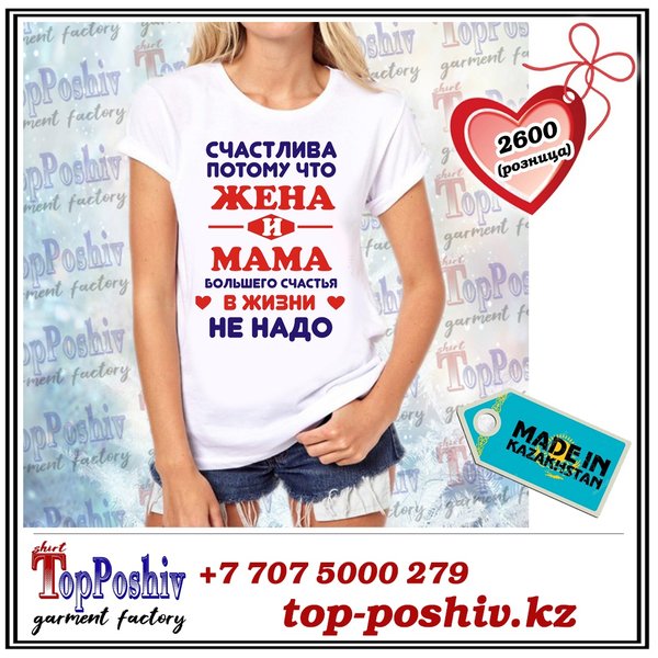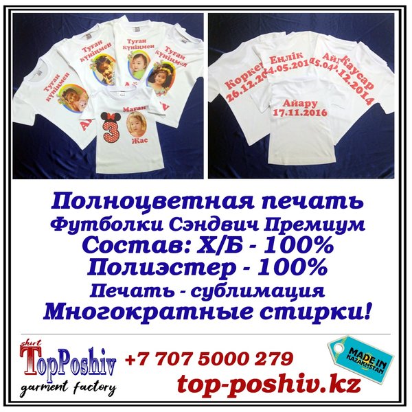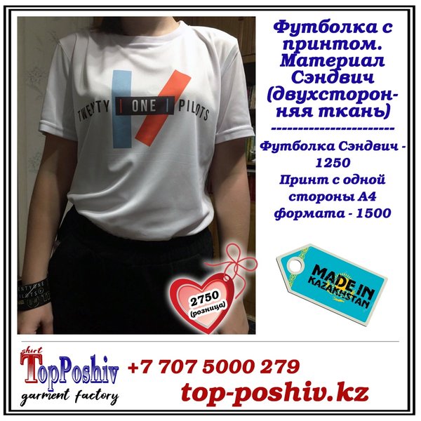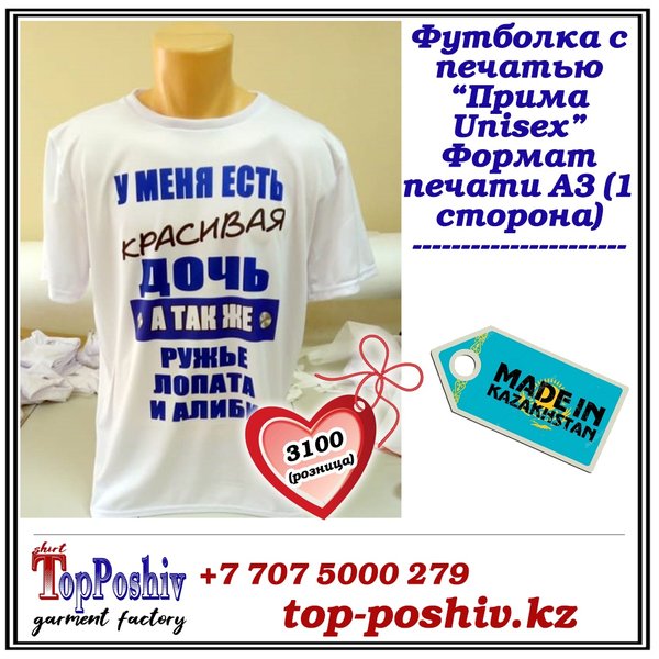 Если вы ищете оригинальный подарок близкому человеку, тогда вам точно к нам Наша футболка, шоппер, свитшот + ваш уникальный принт =подарок, который точно оценят ️ Качественная ткань и печать Уникальный принт (возможно выбрать любой из уже имеющихся) Приятная цена По заказам ️ WhatsApp Звонки: Direct. Наш сайт top-poshiv.kz Почта top-poshiv@mail.ru.ru