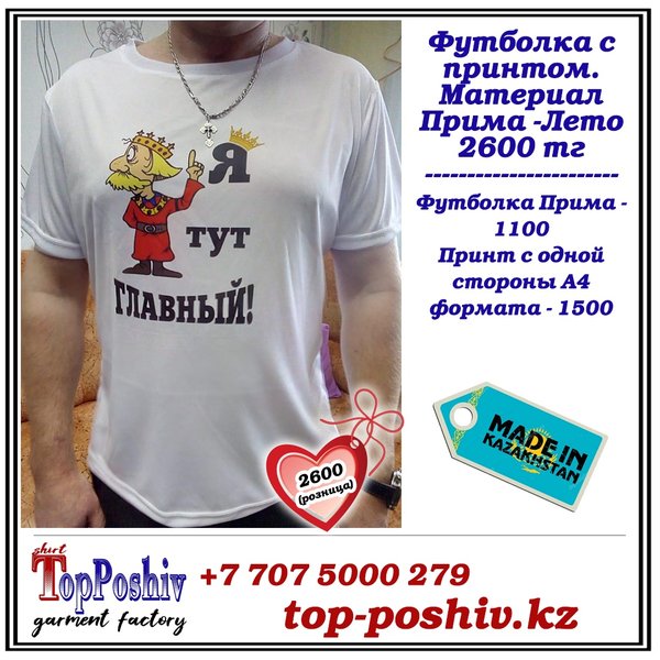 Креативные футболки ждут тебя. Не нашли подходящую вещь? Не проблема Скидывай в личку свою любимую картинку (или даже фотку) и мы напечатаем ее на твоей футболке. •Детские, женские и мужские футболки в наличии и на заказ! •Разнообразные крутые принты •Низкие цены •Быстрая доставка по всему Казахстану (А по Павлодару бесплатно) ======== Переходи по ссылке в шапке профиля и попадешь в такую удобную менюшку. Там собраны самые важные разделы для быстрого доступа! ======== Наш сайт top-poshiv.kz Почта top-poshiv@mail.ru.ru Телеграмм: ========