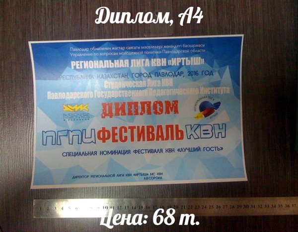 Диплом Формат: 210*297 мм Печать: Лазерная Бумага: ART-TECH GLOSS DIGITAL Плотность бумаги: 300 г/м2 Цена: 68