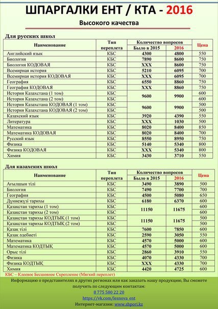 Наталья Леснова (10.07.2016): Торопитесь, закажите шпаргалки для сдачи КТА 2016%. Ваш заказ доставим в любой уголок Республики Казахстан. Мы уверены, что наше качество и наши цены приятно удивят Вас По вопросам заказа: WhatsApp, Инстаграмм: В контакте: Интернет-магазин: