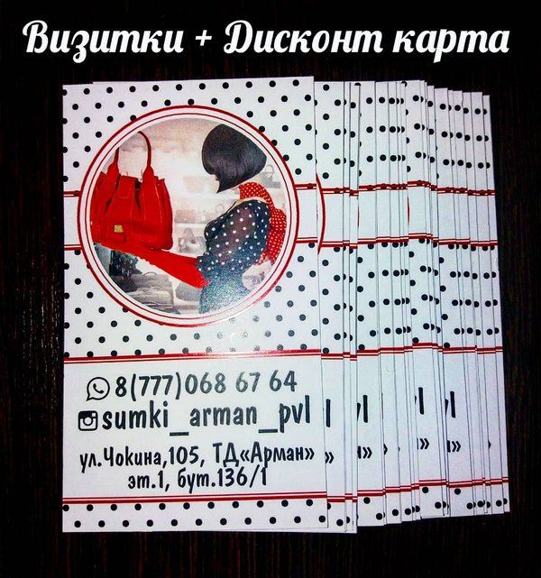 Изготавливаем визитки с дисконтной картой на обратной стороне Цена зависит от нескольких параметров: — количества; — бумаги; — плотности бумаги; — срочности заказа. Все подробности вы можете узнать: в ВК: (написать нам в эту группу — справа сверху выбираете «Написать сообщение») в Инста: в директ @tipografiya_pvl (), позвонить по тел.: 675—200, либо обратиться по адресу ️ ул. Чокина, 105, ТД Арман, офис 32 (цокольный этаж). Работаем с понедельника по воскресенье с 10.00 до 18.45. Перерыв с 14.00 до 15.00.