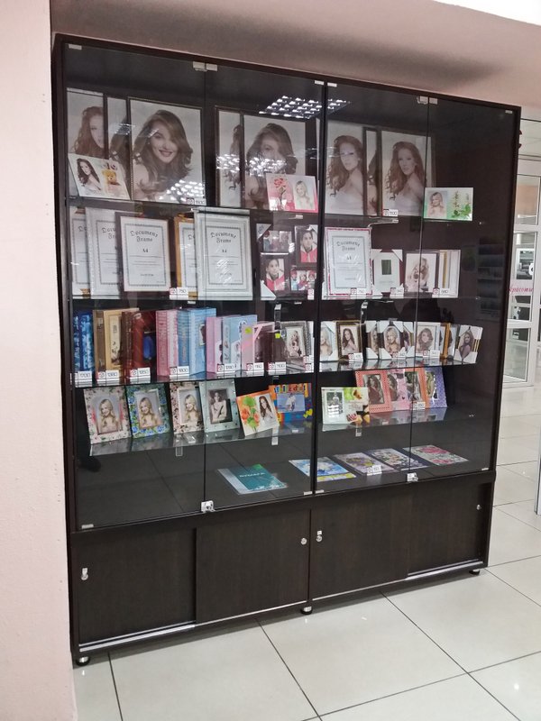 Наша обновлённая витрина! Мы-таки доделали, что задумывали Витрина наполнилась фоторамками А5, А4, А3, 10*15, фотоальбомами, открытками Они просто