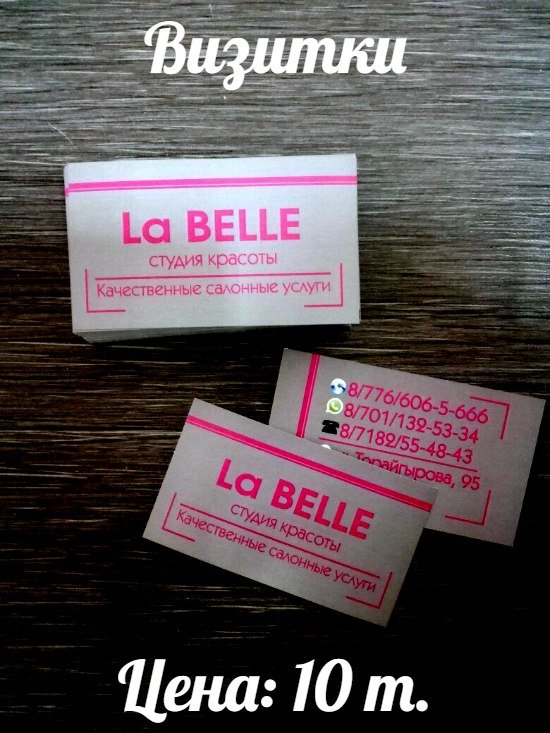 Визитки Печать: лазерная, 4+4 Бумага: 300 г/м Цена: 10 т. (при заказе от 210 шт.)