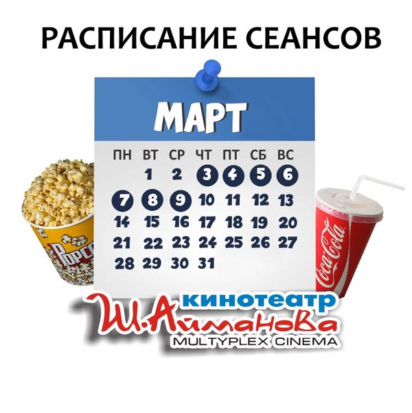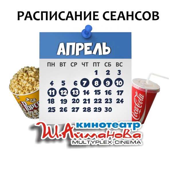 Расписание сеансов кинотеатра имени Шакена Айманова c 7 по 13 апреля включительно. ⠀⠀⠀⠀⠀⠀⠀⠀⠀ Администрация кинотеатра может изменить время начала киносеанса и цены на билеты. Пожалуйста, уточняйте информацию по телефону: 33-88-22 (касса), справочная служба) Желаем Вам приятного просмотра!