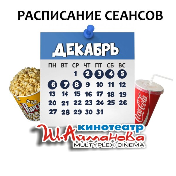 Расписание сеансов кинотеатра имени Шакена Айманова с 9 по 15 декабря включительно. Администрация кинотеатра может изменить время начала киносеанса и цены на билеты. ⠀⠀⠀⠀⠀⠀⠀⠀⠀ Пожалуйста, уточняйте информацию по телефону: 33-88-22 (касса), справочная служба) ОБРАТИТЕ ВНИМАНИЕ Убедительно просим Вас при посещении кинотеатра соблюдать дистанцию в 2 метра; Находиться на территории кинотеатра в медицинских масках. Разрешённая заполняемость зрительных мест — 30% от общего количества мест в кинозале. Желаем Вам приятного и без… — Читать дальше