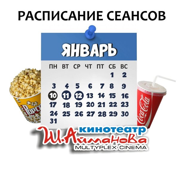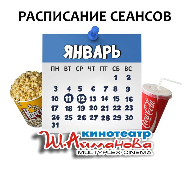 Расписание сеансов кинотеатра имени Шакена Айманова на 11 и 12 января. В ПЕРИОД ДЕЙСТВИЯ РЕЖИМА ЧП КИНОТЕАТР РАБОТАЕТ С 10:00 ДО 20:00 ⠀⠀⠀⠀⠀⠀⠀⠀⠀ Пожалуйста, уточняйте информацию по телефону: 33-88-22 (касса), справочная служба) ОБРАТИТЕ ВНИМАНИЕ Убедительно просим Вас при посещении кинотеатра соблюдать дистанцию в 2 метра; Находиться на территории кинотеатра в медицинских масках. Разрешённая заполняемость зрительных мест — 30% от общего количества мест в кинозале. Желаем Вам приятного и безопасного просмотра!