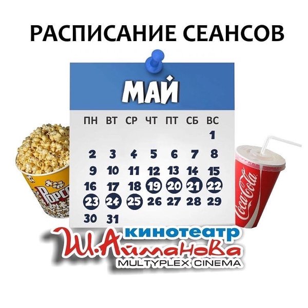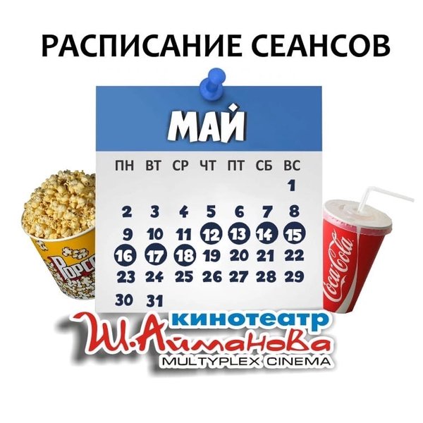 Расписание сеансов кинотеатра имени Шакена Айманова c 12 по 18 мая включительно. ⠀⠀⠀⠀⠀⠀⠀⠀⠀ ️Администрация кинотеатра может изменить время начала киносеанса и цены на билеты. Пожалуйста, уточняйте информацию по телефону: 33-88-22 (касса), справочная служба) Желаем Вам приятного просмотра!