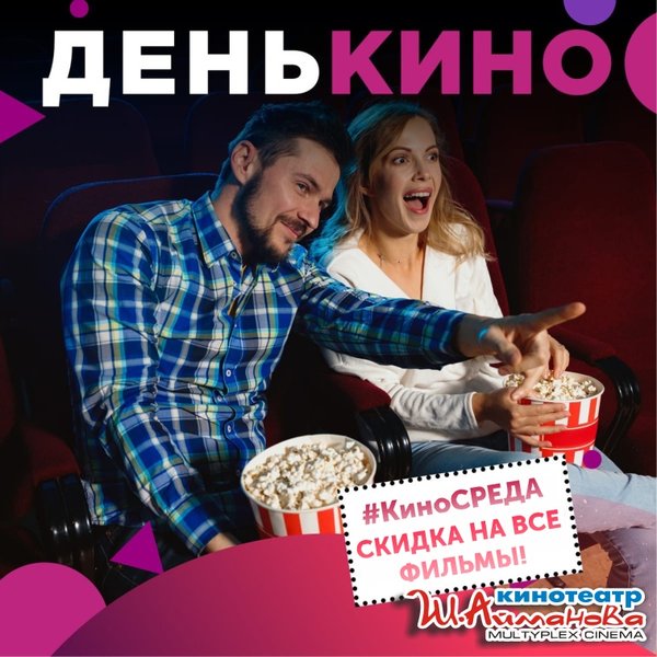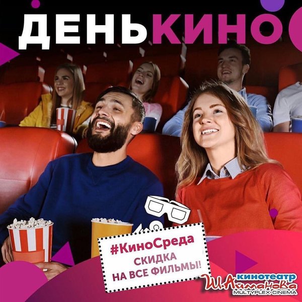 17 Ноября в кинотеатре имени Шакена Айманова традиционная акция — «КиноСРЕДА»! СКИДКА НА ВСЕ ФИЛЬМЫ ⠀