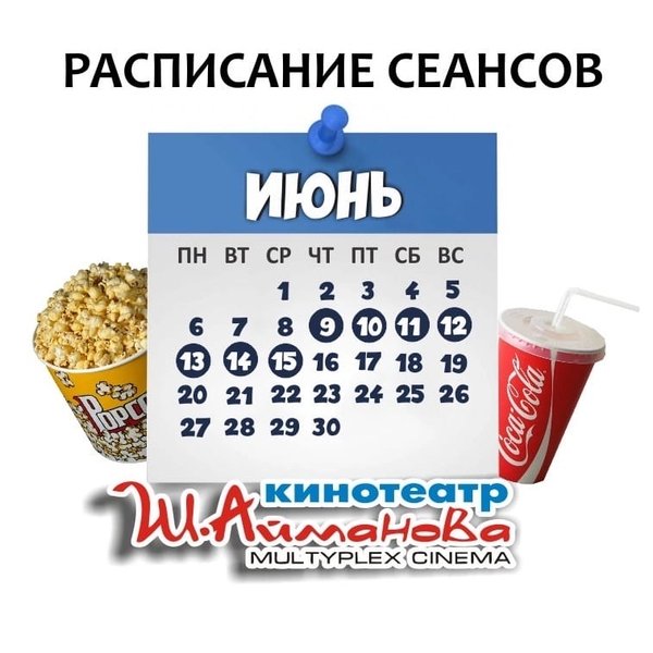 Расписание сеансов кинотеатра имени Шакена Айманова c 9 по 15 июня включительно. ⠀⠀⠀⠀⠀⠀⠀⠀⠀ ️Администрация кинотеатра может изменить время начала киносеанса и цены на билеты. Пожалуйста, уточняйте информацию по телефону: 33-88-22 (касса), справочная служба) Желаем Вам приятного просмотра!