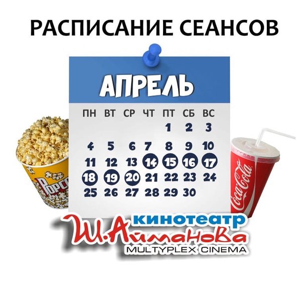 Расписание сеансов кинотеатра имени Шакена Айманова c 14 по 20 апреля включительно. ⠀⠀⠀⠀⠀⠀⠀⠀⠀ ️Администрация кинотеатра может изменить время начала киносеанса и цены на билеты. Пожалуйста, уточняйте информацию по телефону: 33-88-22 (касса), справочная служба) Желаем Вам приятного просмотра!