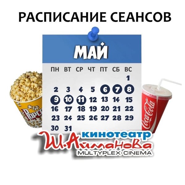Расписание сеансов кинотеатра имени Шакена Айманова c 6 по 11 мая включительно. ⠀⠀⠀⠀⠀⠀⠀⠀⠀ ️Администрация кинотеатра может изменить время начала киносеанса и цены на билеты. Пожалуйста, уточняйте информацию по телефону: 33-88-22 (касса), справочная служба) Желаем Вам приятного просмотра!