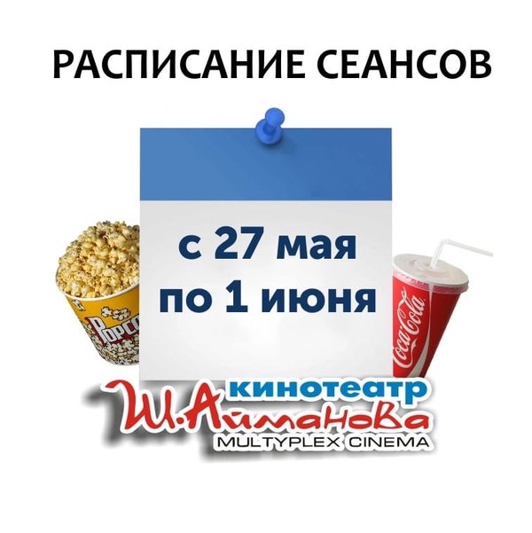 Расписание сеансов кинотеатра имени Шакена Айманова c 27 мая по 1 июня включительно. ⠀⠀⠀⠀⠀⠀⠀⠀⠀ ️Администрация кинотеатра может изменить время начала киносеанса и цены на билеты. Пожалуйста, уточняйте информацию по телефону: 33-88-22 (касса), справочная служба) Желаем Вам приятного просмотра!