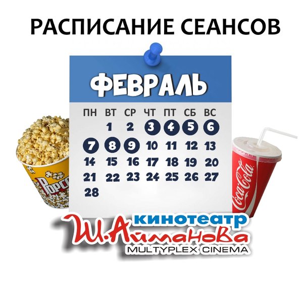 Расписание сеансов кинотеатра имени Шакена Айманова c 3 по 9 февраля включительно. ⠀⠀⠀⠀⠀⠀⠀⠀⠀ Администрация кинотеатра может изменить время начала киносеанса и цены на билеты. Пожалуйста, уточняйте информацию по телефону: 33-88-22 (касса), справочная служба) ОБРАТИТЕ ВНИМАНИЕ Убедительно просим Вас при посещении кинотеатра соблюдать дистанцию в 2 метра; Находиться на территории кинотеатра в медицинских масках. Разрешённая заполняемость зрительных мест — 30% от общего количества мест в кинозале. Желаем Вам приятного и безо… — Читать дальше