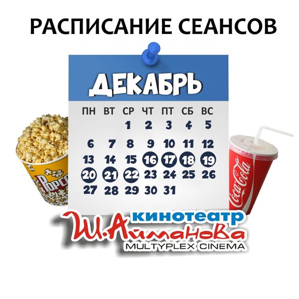 Расписание сеансов кинотеатра имени Шакена Айманова с 16 по 22 декабря включительно. Администрация кинотеатра может изменить время начала киносеанса и цены на билеты. ⠀⠀⠀⠀⠀⠀⠀⠀⠀ Пожалуйста, уточняйте информацию по телефону: 33-88-22 (касса), справочная служба) ОБРАТИТЕ ВНИМАНИЕ Убедительно просим Вас при посещении кинотеатра соблюдать дистанцию в 2 метра; Находиться на территории кинотеатра в медицинских масках. Разрешённая заполняемость зрительных мест — 30% от общего количества мест в кинозале. Желаем Вам приятного и бе… — Читать дальше