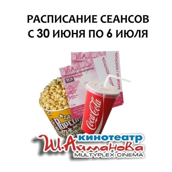 Расписание сеансов кинотеатра имени Шакена Айманова c 30 июня по 6 июля включительно. ⠀⠀⠀⠀⠀⠀⠀⠀⠀ ️Администрация кинотеатра может изменить время начала киносеанса и цены на билеты. Пожалуйста, уточняйте информацию по телефону: 33-88-22 (касса), справочная служба) Желаем Вам приятного просмотра!