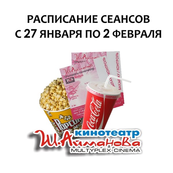 Расписание сеансов кинотеатра имени Шакена Айманова c 27 января по 2 февраля включительно. ⠀⠀⠀⠀⠀⠀⠀⠀⠀ Администрация кинотеатра может изменить время начала киносеанса и цены на билеты. Пожалуйста, уточняйте информацию по телефону: 33-88-22 (касса), справочная служба) ОБРАТИТЕ ВНИМАНИЕ Убедительно просим Вас при посещении кинотеатра соблюдать дистанцию в 2 метра; Находиться на территории кинотеатра в медицинских масках. Разрешённая заполняемость зрительных мест — 30% от общего количества мест в кинозале. Желаем Вам приятног… — Читать дальше