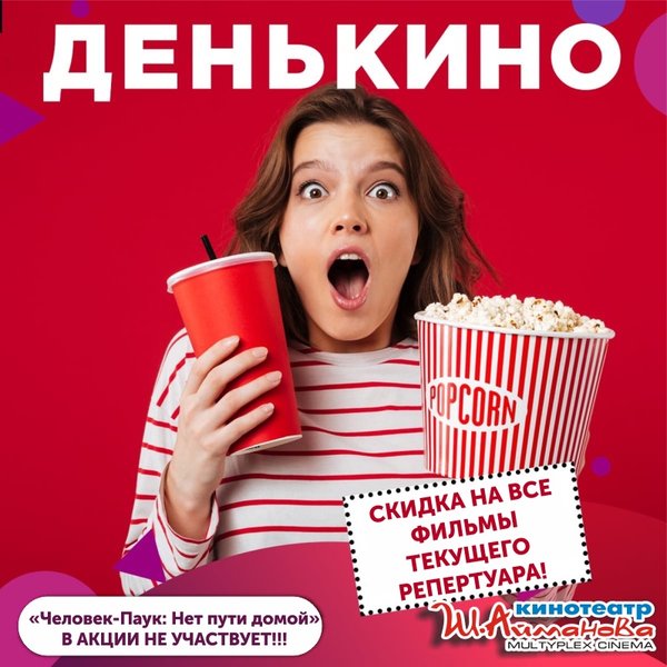 Акция не действует на VIP-места ⠀⠀⠀⠀⠀ До встречи в кинотеатре имени Шакена Айманова!