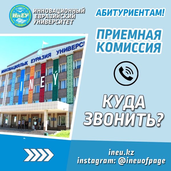 х, удобное общежитие, поддержку на всех этапах обучения и возможность участвовать в международных обменах. В ИнЕУ вас ждет комфортная инфраструктура, дружелюбное сообщество и возможность стать частью университетской семьи. Мы заботимся о том, чтобы каждый студент чувствовал себя как дома. Присоединяйтесь к нам, чтобы получить качественное образование и открыть новые горизонты! Наш адрес: Казахстан, г. Павлодар, ул. Ломова, 45к1 Контакты для поступления: WhatsApp)