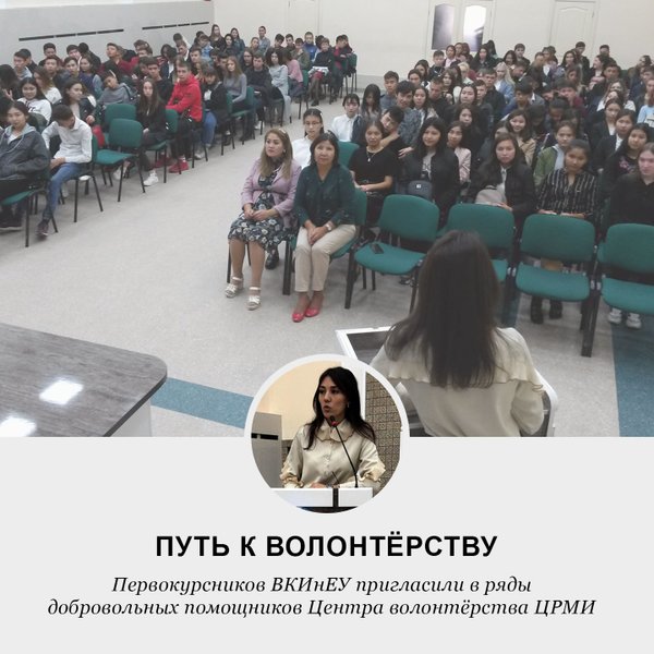 первокурсникам. Руководитель Центра волонтёрства ЦРМИ Саягүл Серікбекқызы рассказала ребятам о разных видах добровольной общественной работы. Ребята, если вы хотите быть полезными обществу, решать важные социальные вопросы, оказывать помощь тем, кто в ней нуждается, обращайтесь в Центр волонтёрства ЦРМИ: ул. Ломова, 38