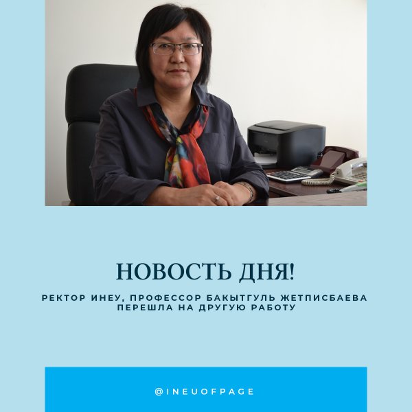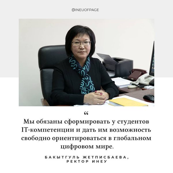 Ректор ИнЕУ, профессор Бакытгуль Асылбековна Жетписбаева перешла на другую работу. По решению Наблюдательного совета ей присвоено звание Почётного профессора Инновационного Евразийского университета. ⠀ Бакытгуль Асылбековна продолжит сотрудничать с нашим университетом в качестве члена Наблюдательного совета по академическим вопросам. ⠀ Коллектив Инновационного Евразийского университета желает профессору Жетписбаевой новых профессиональных успехов. ⠀