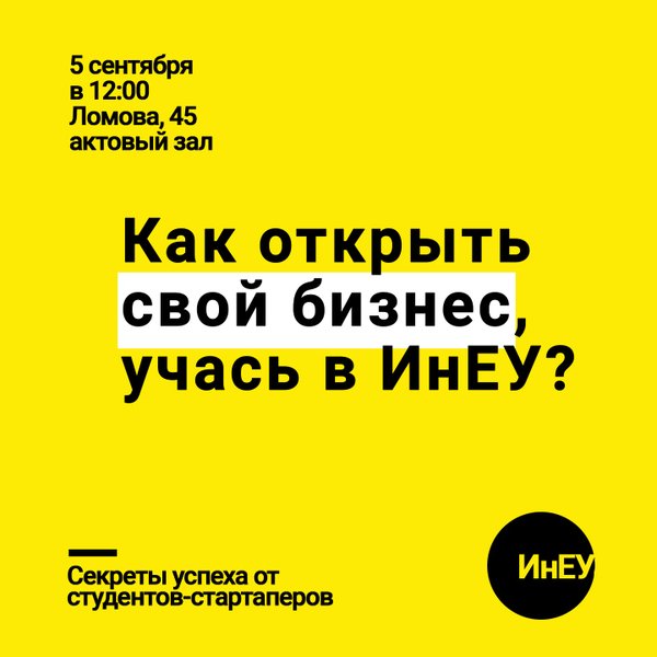 ВНИМАНИЮ ПЕРВОКУРСНИКОВ! Сегодня в 12:00 неформальная встреча со студентами 1 курса ИнЕУ по стартапам и развитию предпринимательства! Это может стать поворотом в вашей судьбе! Carpe diem!