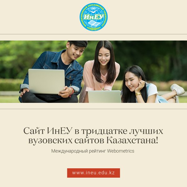 Сайт ИнЕУ занял 30 место среди 120 сайтов высших учебных заведений Казахстана в июльском рейтинге Webometrics. ⠀ Рейтинг Webometrics проводит Испанская Лаборатория Cybermetrics Lab. Cайты вузов сравниваются по степени наполнения. В этом году произведена оценка 28000 вузов планеты. ⠀ Webometrics мотивирует исследователей по всему миру публиковать больше высококачественных научных трудов, делая их доступными мировой общественности. ⠀ Подробнее на сайте ⠀