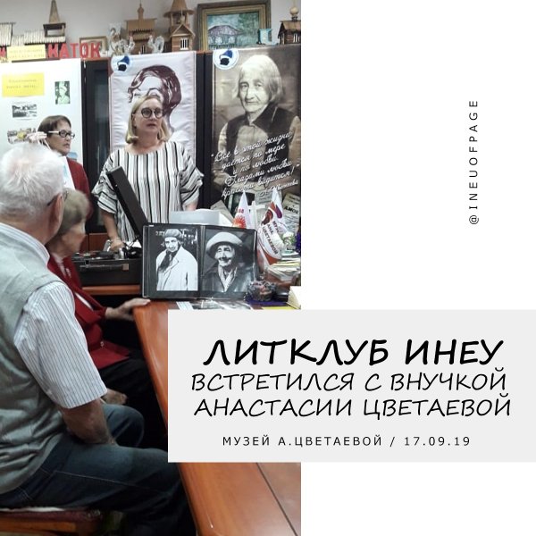 ривели сталинские репрессии. Здесь она начала главный труд своей жизни — книгу «Воспоминания», принесшую ей широкую известность. ⠀ В ближайших планах Литклуба ИнЕУ посетить «Цветаевский костёр» (Ленпарк, 22 сентября, 15:00), детально ознакомиться с экспозицией музея Цветаевой и провести встречу с известным поэтом, имя которого пока держится в секрете. ⠀ Студент или преподаватель консорциума ИнЕУ! Если вы поэт, писатель, или увлечённый читатель, запишитесь в Литклуб ИнЕУ на кафедре Филологии и журналистики: Горького, 102/1, каб. 107 или позвоните лидеру клуба: Илья Приходченко ⠀