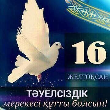 Сәлем Қайырлы таң! Тəуелсіздік мерекесі құтты болсын!Ел аман болсын,бейбітшілік заман болсын!Шаңырақтарыңыз шаттыққа толсын!Бақытты болыңыздар! Қазақстанымыз жасай берсі