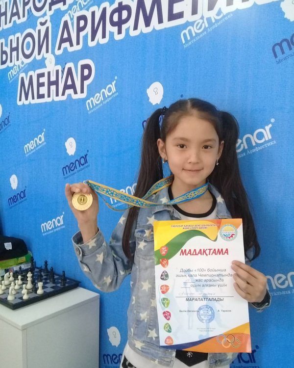 Участник Международного Чемпионата по ментальной арифметики Менар. Студент -Анна Занимается Анна в Менаре всего полгода, и за это время показывает отличные результаты. Анна может с легкостью складывать и читать числа (однозначные и двузначные) на скорость. # @ Pavlodar